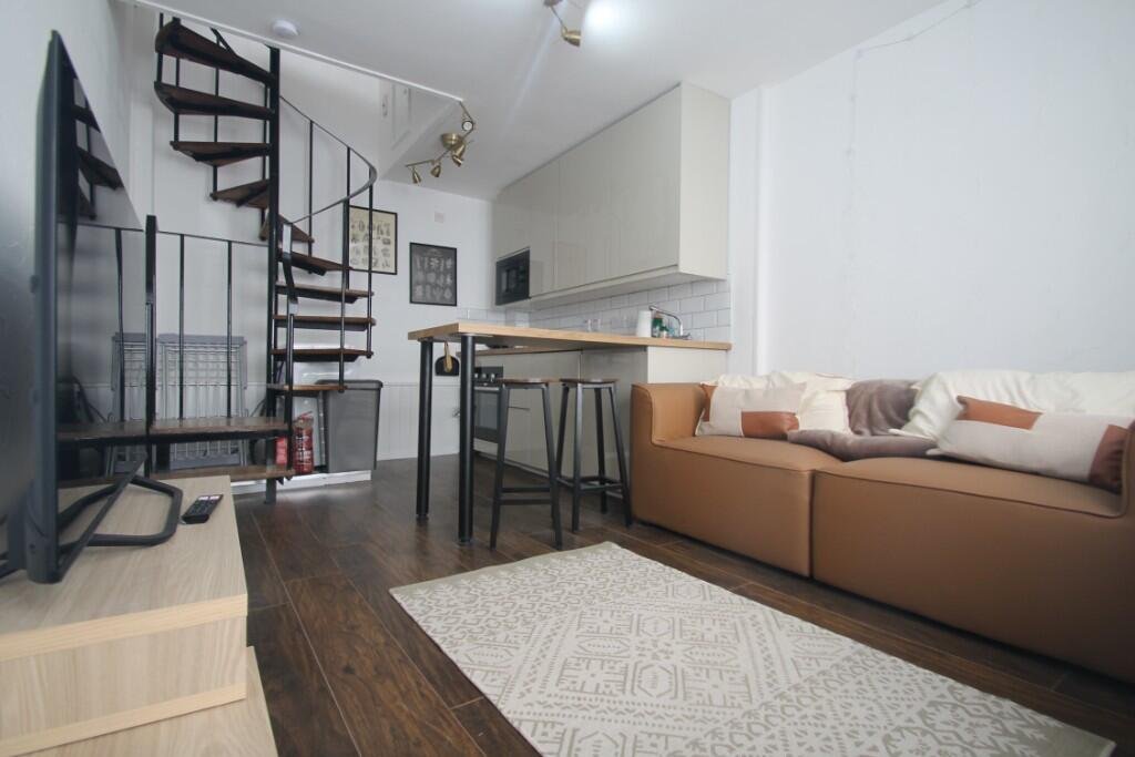 With a modern, open-plan living and kitchen area, complete with a unique spiral staircase leading up to your room and bathroom, this quirky house is sure to impress.