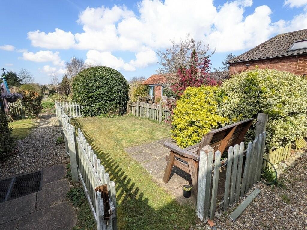 Outside To the front of the property is a shingled area providing off street car parking for at least two cars. The rear garden offers a small pleasant lawned area. There is a pedestrian footpath right of way to adjoining cottages. Â
