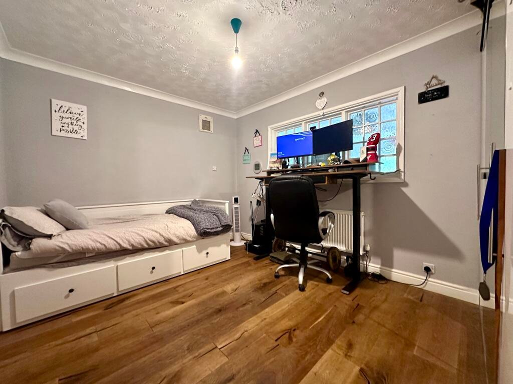 Double glazed window to front aspect. Radiator, range of fitted wardrobes with overhead storage and hanging space. Radiator and wood flooring.