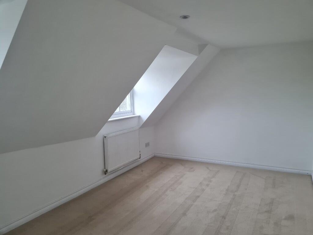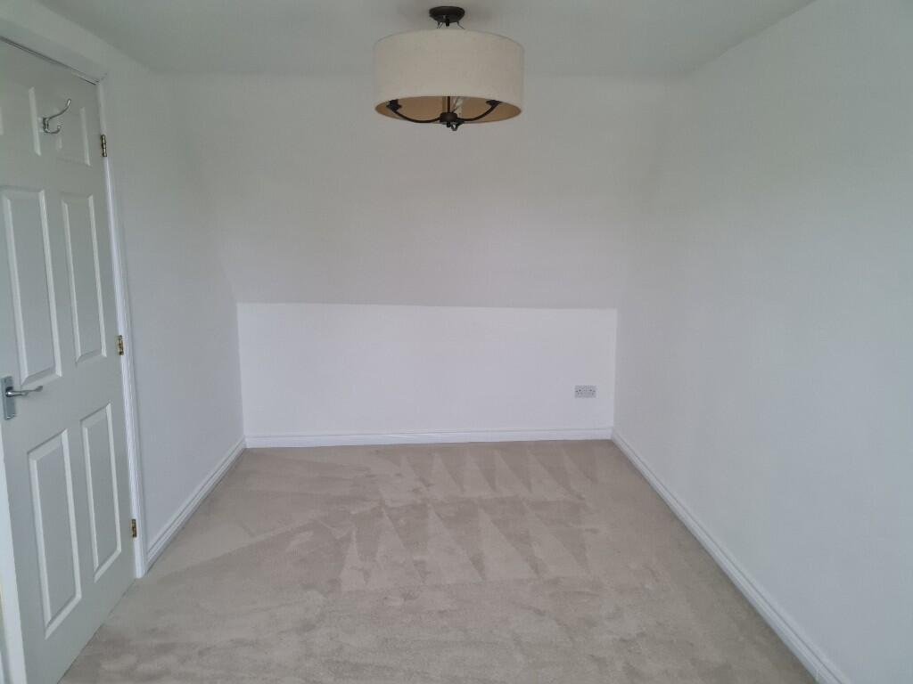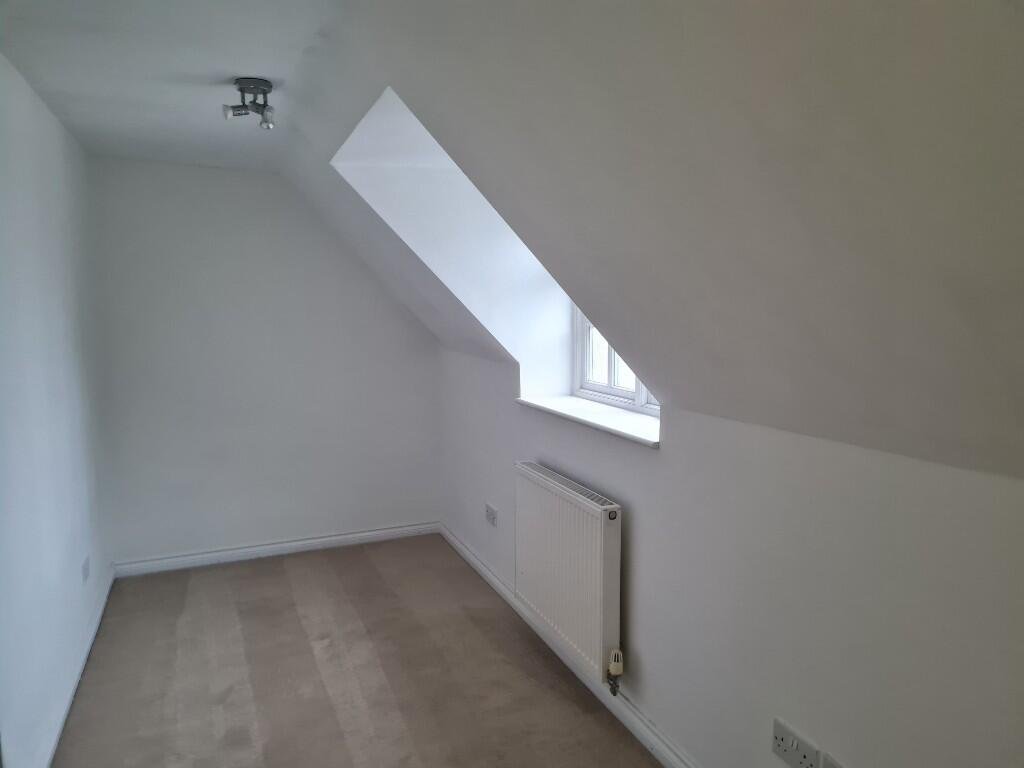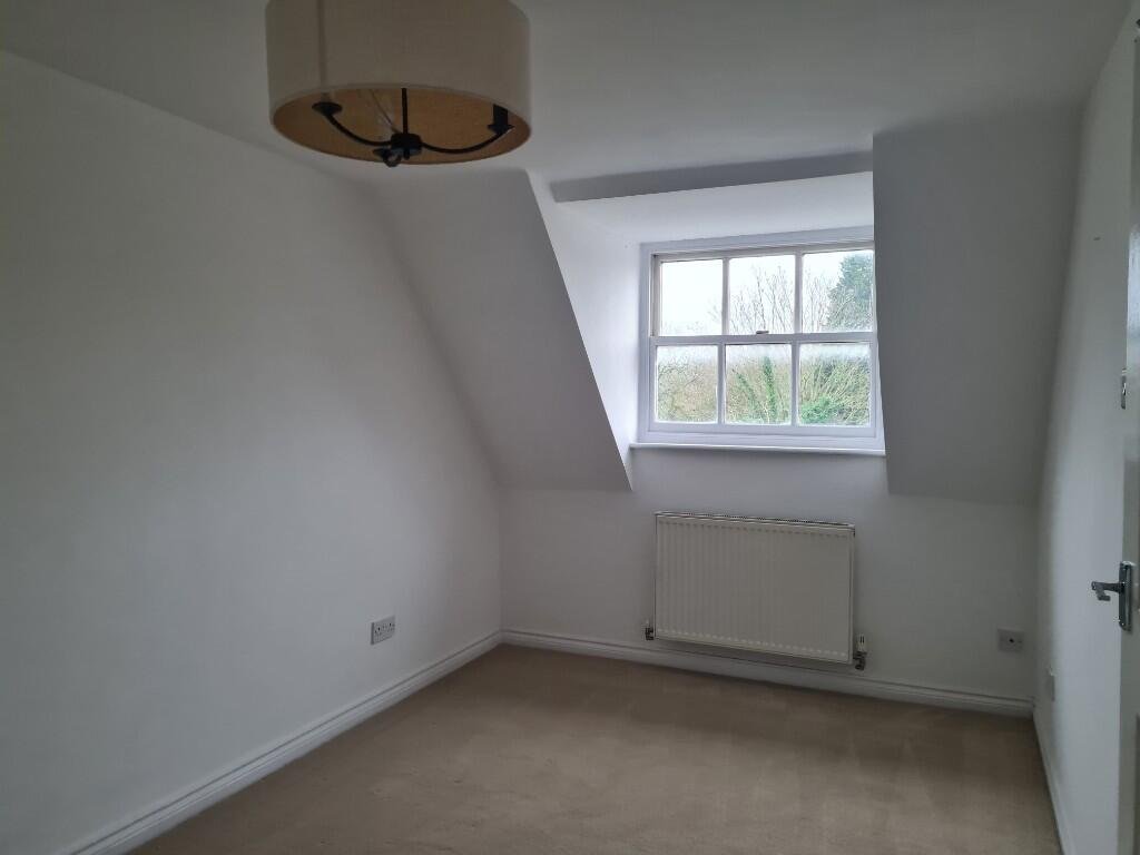 Bedroom 2: Small double/large single with white walls and beige carpet.  Sash window.  TV aerial socket.