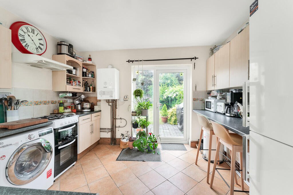 KITCHEN 10′ 4″ x 11′ 3″ (3.17m x 3.45m) Double glazed door to rear garden, single panelled radiator, range of base and