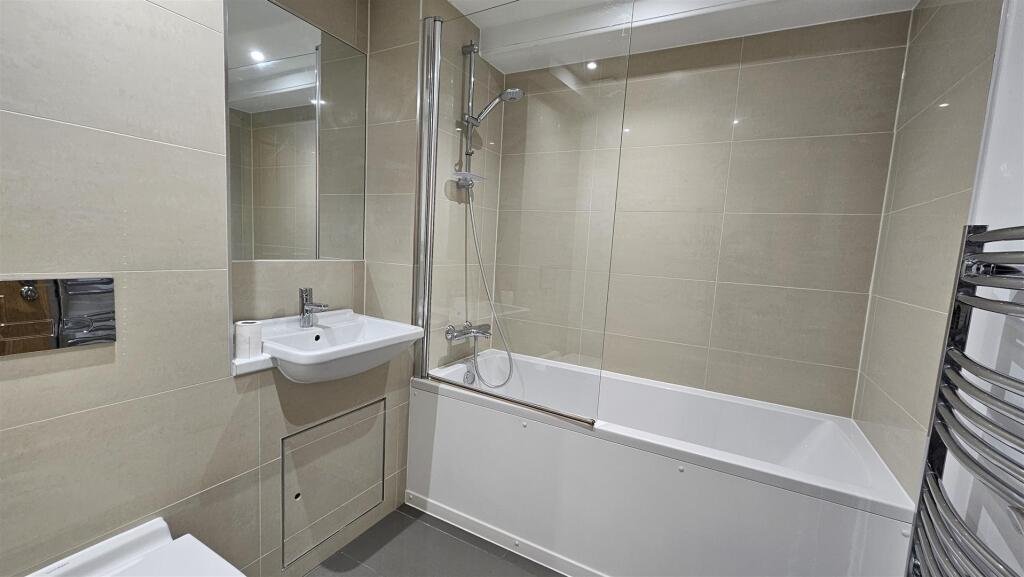 This beautifully well-proportioned, unfurnished flat is finished to an exceptionally high standard, featuring fully integrated kitchens with a range of appliances, inset ceiling lighting, gas central heating, high-specification bathrooms, and double glazing throughout. A separate storage cupboard with a washing machine keeps laundry noise tucked away, allowing you to fully enjoy the comfort of your open-plan living area.