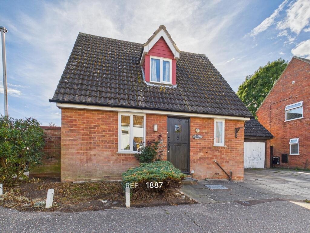 TWO BEDROOM DETACHED chalet style house situated a few minutes walk from mainline RAILWAY STATION. One first floor double bedroom, ground floor second bedroom/dining room, living room, kitchen, bathroom with shower over the bath, Gas Central Heating, lawned garden, driveway and GARAGE.