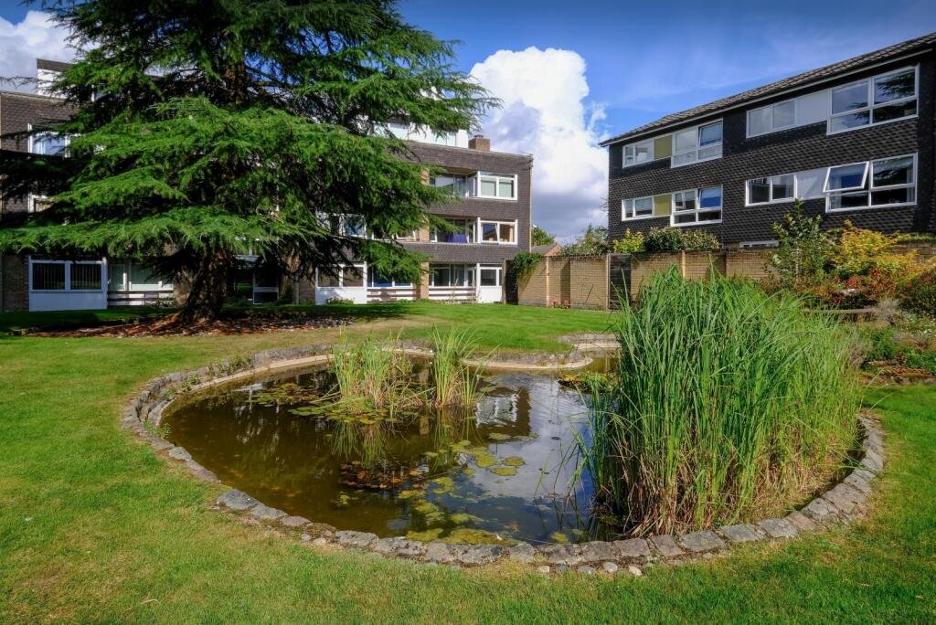 * Extensive communal gardens with mature trees, pond, and seating areas