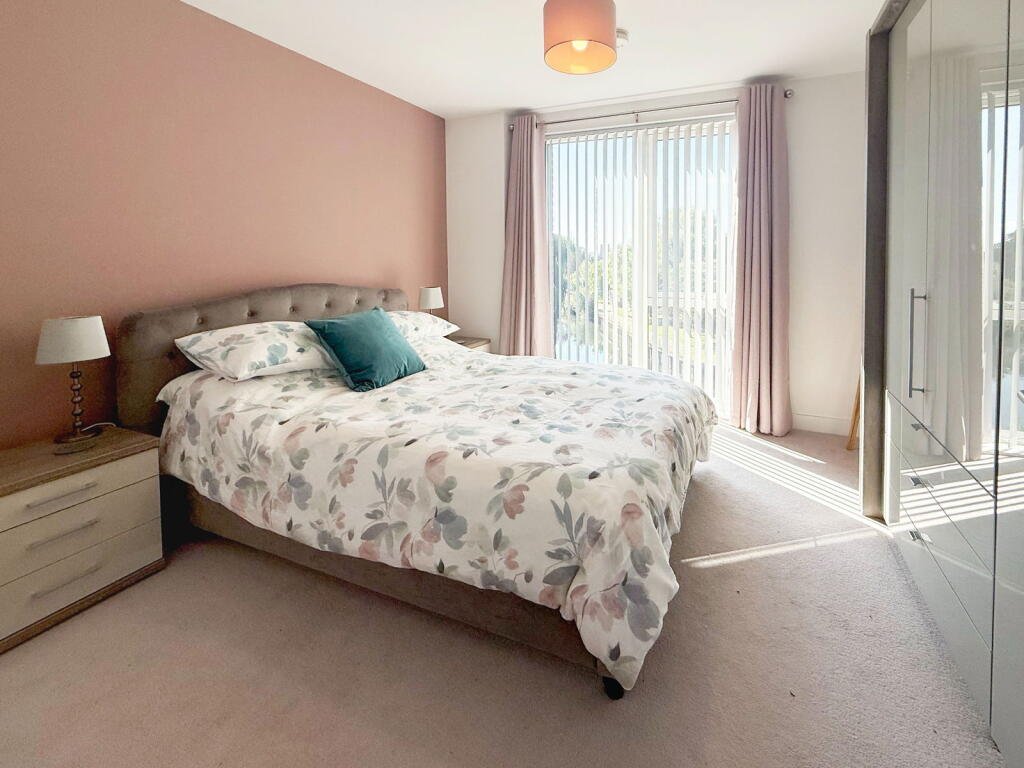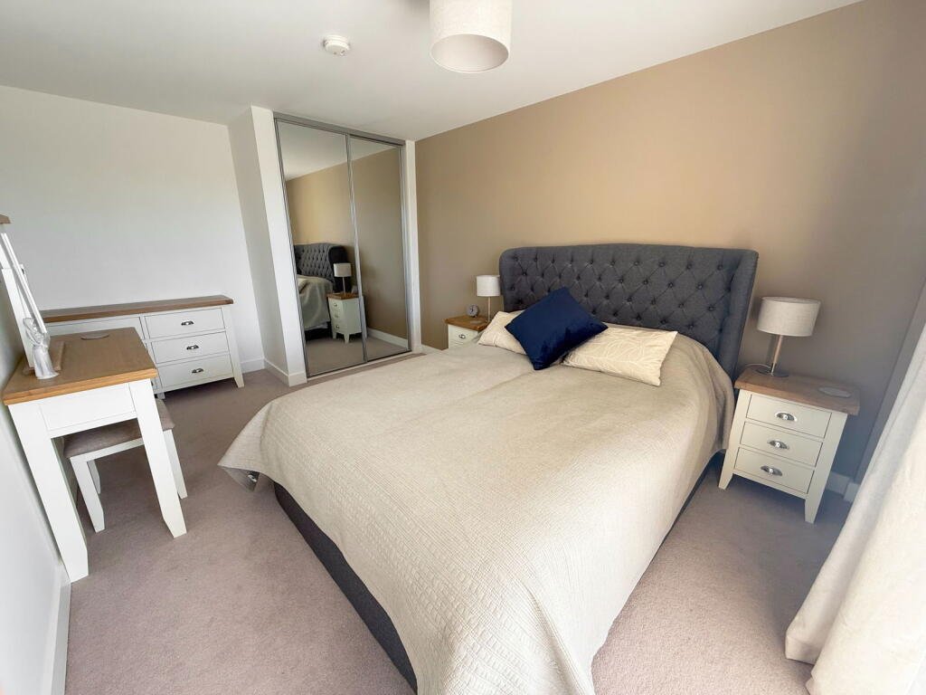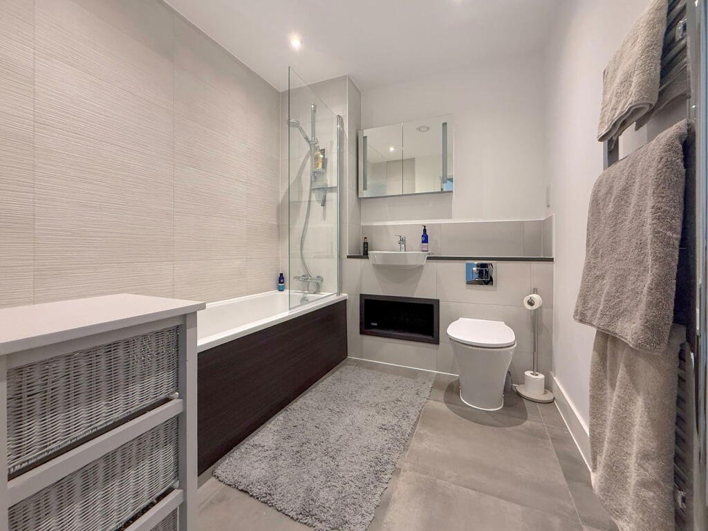 The principal bedroom also benefits from a stylish en-suite shower room, while a second double bedroom offers excellent versatility for guests, a home office, or additional living space. A further modern bathroom, finished to the same high standard, completes the internal accommodation.