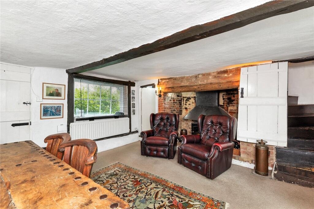 Character feature family home. Offering exposed beams, two inglenook fireplaces & ornate plasterwork. Spacious living areas with glazed doors to private patio, country-style kitchen with breakfast area and Aga. The property also comprises of two generous Reception rooms, the sitting room opens onto the patio area, three generous bedrooms and large family bathroom, guest shower room and WC. The property also is south-west-facing garden with mature planting, lawn & patio, with versatile outbuilding and off-road parking, and an established garden to the rear and side of the property.
