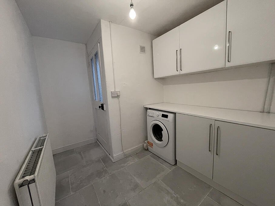 The garden is predominantly laid to lawn and includes a separate vegetable patch and greenhouse, ideal for green-fingered tenants. Accessed via a versatile room off the kitchen—perfect as a home office, playroom, or boot room—this space also leads to a dedicated outbuilding area.