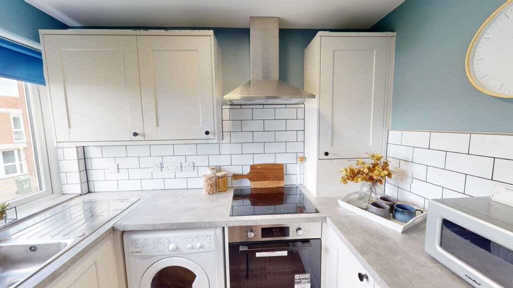 We’ve designed the bedrooms to include double beds and offer some separation from the living/study area. Work hard at your desk or loaf around on the sofa and watch your giant Smart TV. The bathroom is fitted with a bath and overhead shower. Soak away the stress of upcoming assignments with a bath or shake off that hangover with a speedy shower. Forget about doing the dishes, and instead, just remember to unload your dishwasher. Don’t feel like cooking? No problem! The central location means even the fussiest eaters can find their new favourite takeout on Deliveroo.