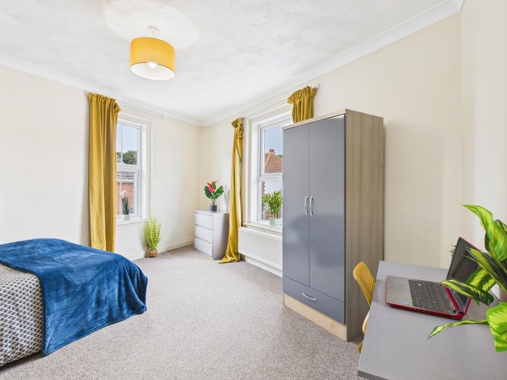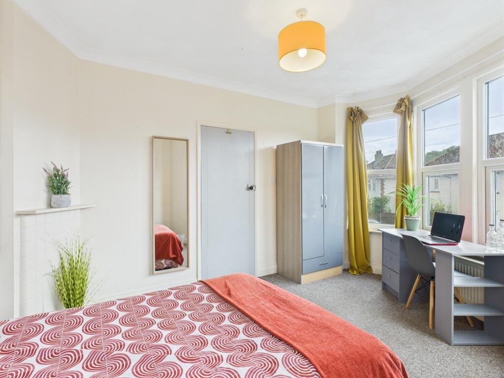 This 4-bedroom student house is double glazed, with wooden flooring.