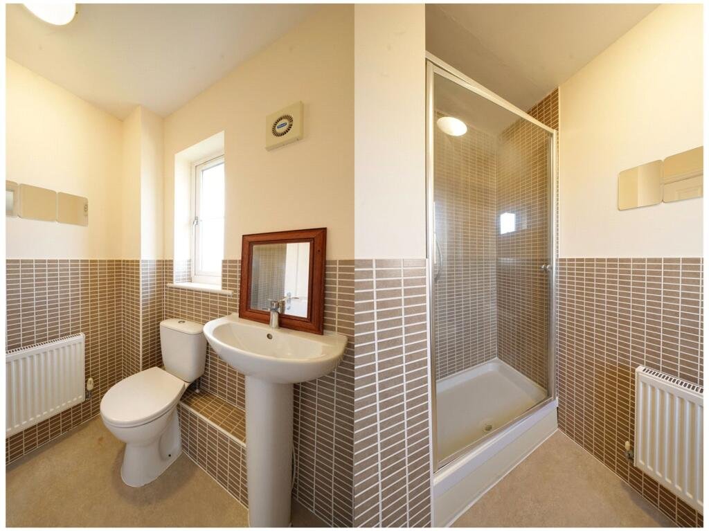 EN-SUITE:Suite comprising of low level WC, handbasin, shower cubicle and window to rear.