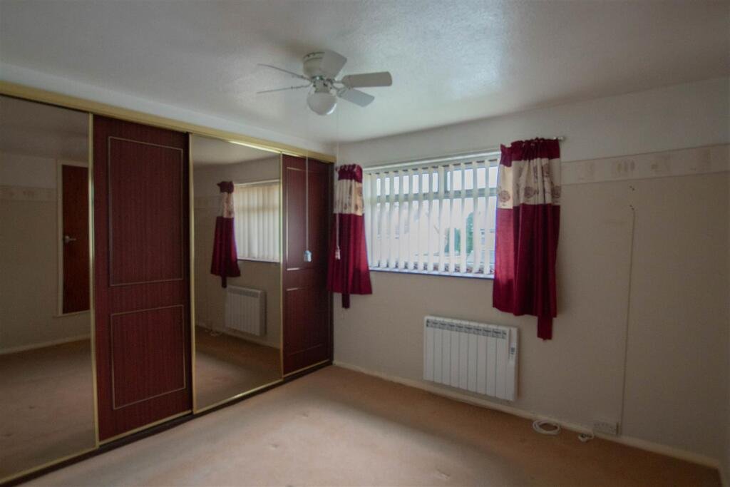 Bedroom 1 – 3.86m x 3.51m max (12’8″ x 11’6″ max) – Window to front, built in wardrobe with sliding doors, storage cupboard