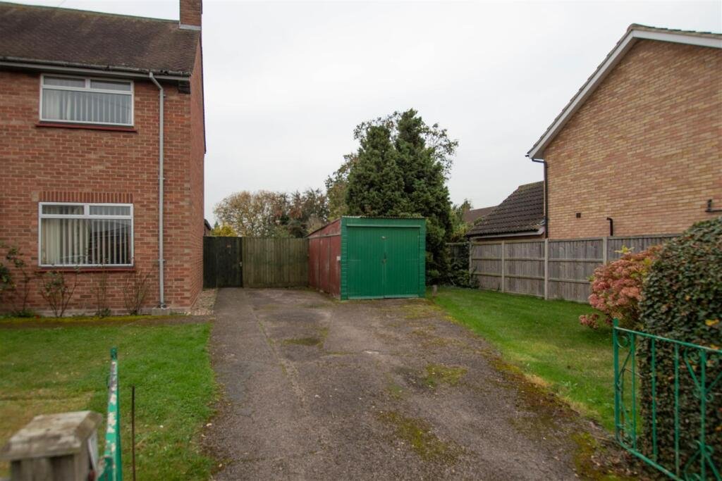 Outside – Larger than average rear garden enclosed by fences with mature shrubs and patio area, gated access to front. Storage shed. To the front is a driveway for approx. 2 vehicles and storage shed. Front garden laid to lawn