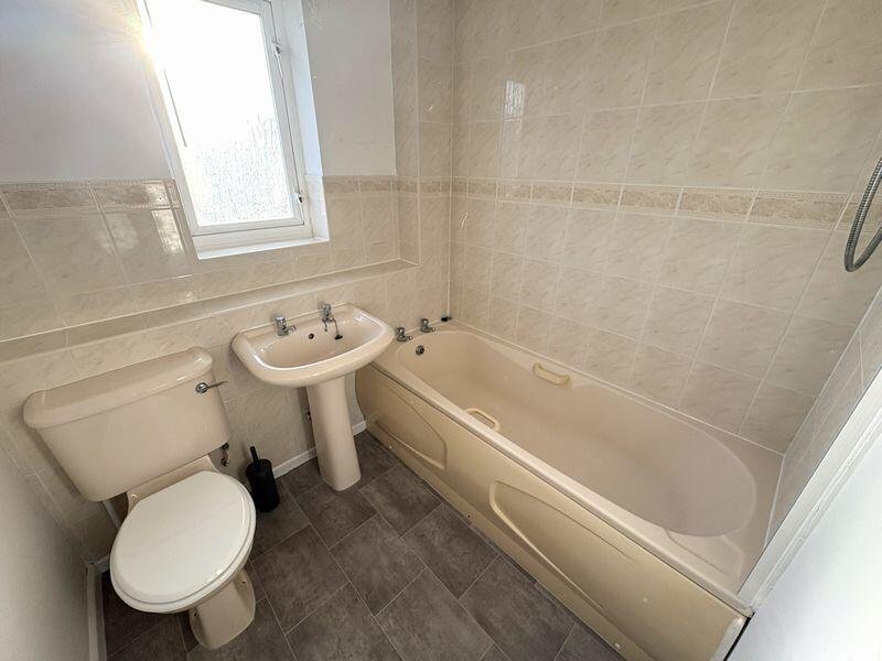 BATHROOMFitted with a three piece suite comprising panel bath with electric shower over, low level wc and wash hand basin. Extractor fan. Wall mounted electric fan. Tiled walls and floor. uPVC double glazed obscure window to rear.