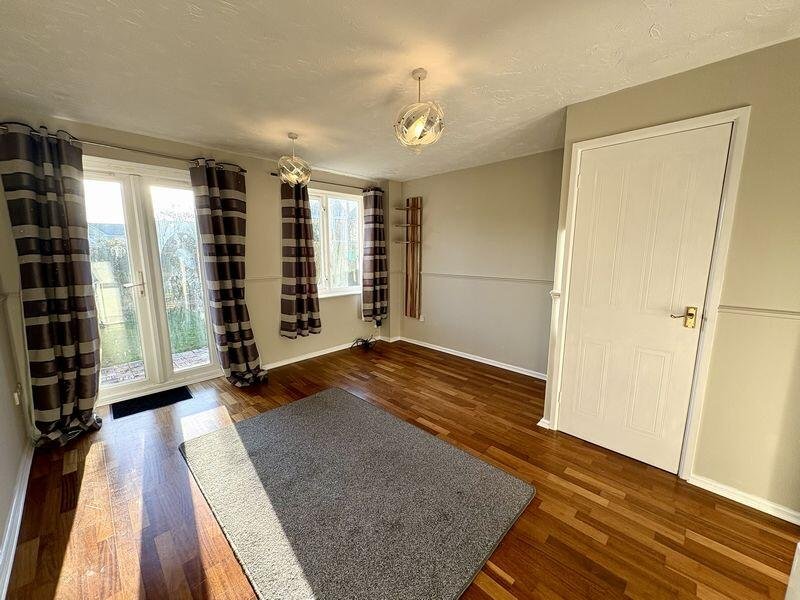 LOUNGE3.71m (12’2) x 3.91m (12’10). Laminate flooring. Telephone point. Television point. Electric radiator. uPVC double glazed window to front and uPVC double glazed french doors leading to the rear garden and patio area.