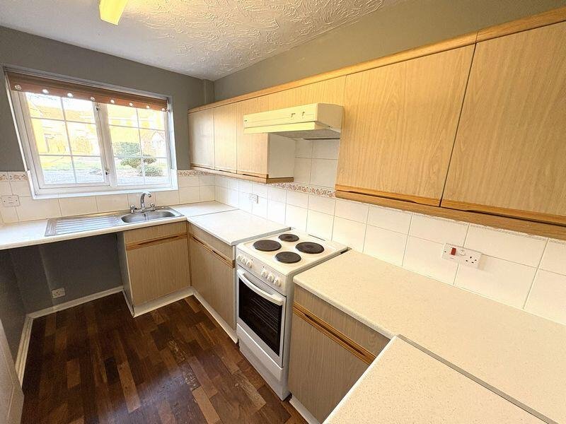 KITCHEN1.78m (5’10) x 3.10m (10’2). Fitted with a range of matching base and wall units with work surface over. Space for washing machine and fridge freezer. Cooker with extractor hood above. Stainless steel sink with drainer. Laminate flooring. uPVC double glazed