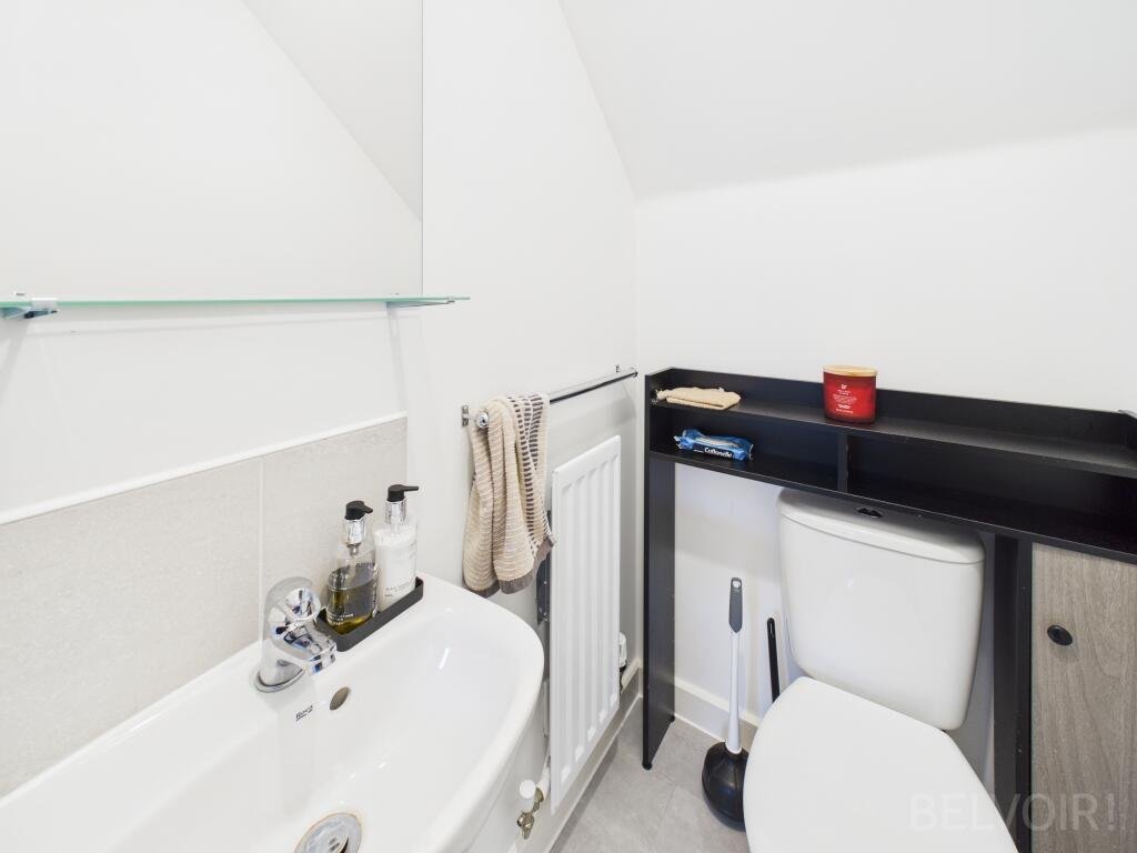 Upstairs, there are two double bedrooms. The principal bedroom is a well-sized double to the front of the house. The second bedroom, while narrower, can accommodate a double bed or serve as an excellent guest room or home office.A modern three-piece bathroom completes the first floor, featuring a bath with shower over, WC and hand-wash basin.