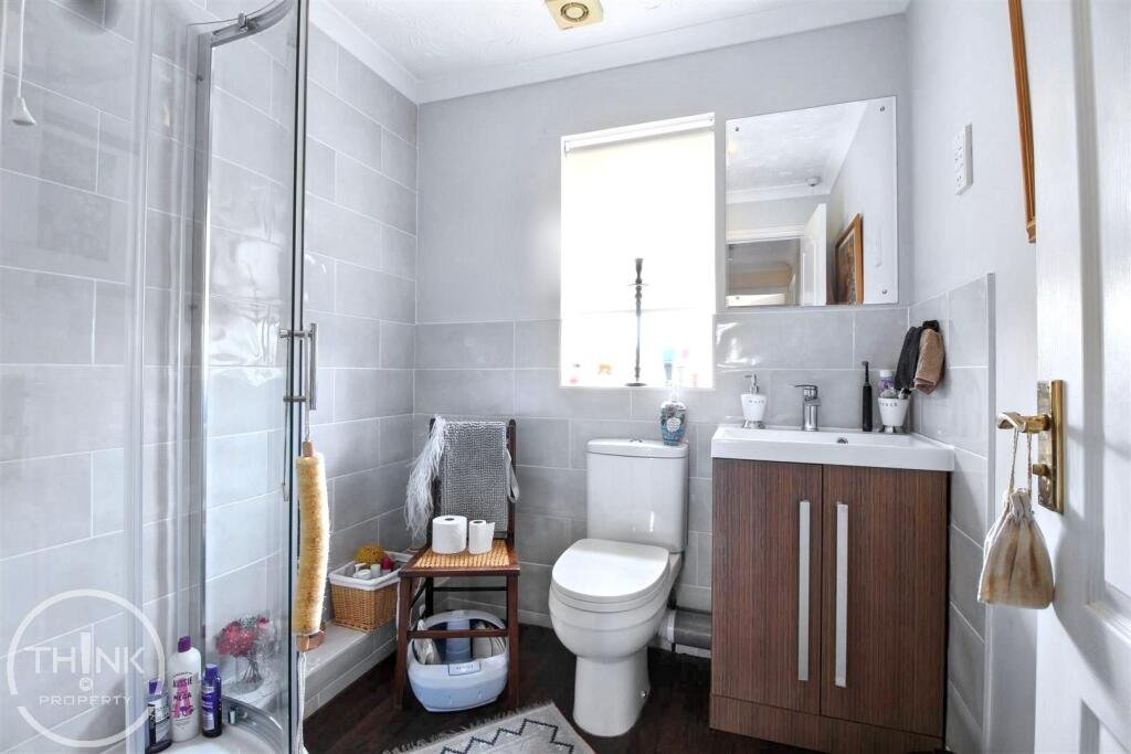 Bathroom – A modern and neatly presented shower room comprising a glazed shower enclosure, sleek wash basin, and low-level WC. Finished with contemporary tiling and clean lines, offering both style and practicality.