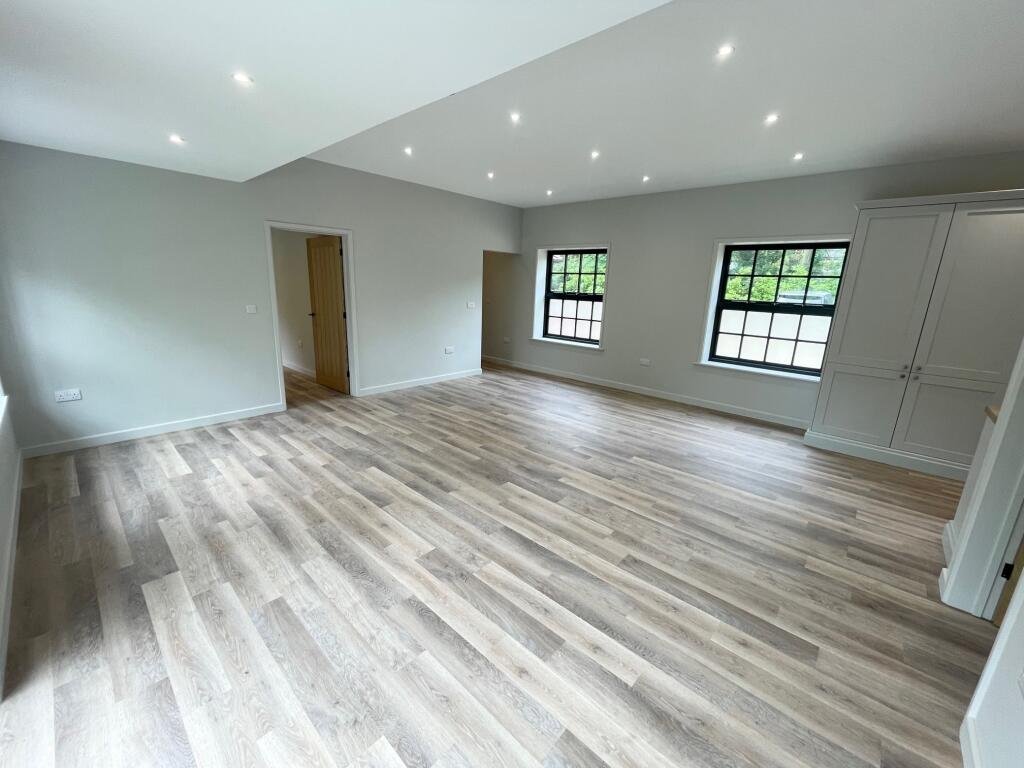 The living area is open and airy, the large multi paned windows and French doors offer a plethora of light into the room, as well as an impressive outlook of the Suffolk countryside. Furthermore, to the left-hand side of the lounge we have the Master bedroom. This is of a considerable size and includes a large walk-in wardrobe – Just off the Master we have the impressive en-suite, tiled in slate grey, with a shower cubicle, tiled seating area, and LED lighting. WC also in the en-suite.