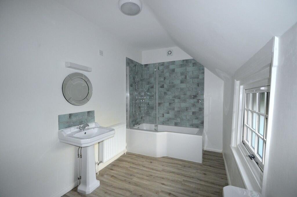 The first floor is equally appealing with the stairs rising to the landing from which the bedrooms are accessed. There are two spacious bedrooms, the largest of which overlooks the rear garden and has an attractive Victorian cast iron fireplace. The second bedroom and office both overlook the garden and have built in wardrobes. The bedrooms are served by a well appointed family bathroom which has a ‘P’ shaped bath with a tiled surround and shower above, pedestal wash hand basin and matching WC, and a useful storage cupboard with shelves and oak effect vinyl flooring.