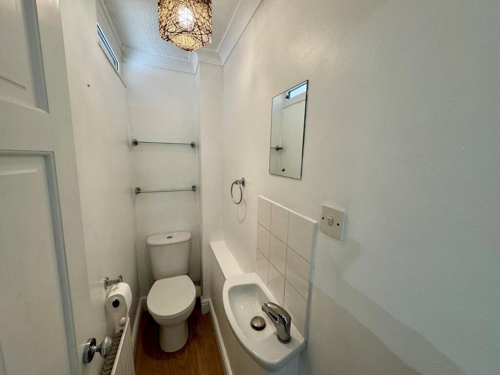 Upstairs, three generous bedrooms provide restful sanctuaries, each bathed in natural light. The principal bedroom and second bedroom both feature plush fitted carpets and peaceful garden views, while the third offers a bright, adaptable space, perfect for a nursery or home office.