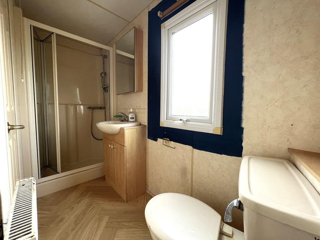 Shower Room Shower, wash hand basin and WC, double glazed window and vinyl flooring.Â
