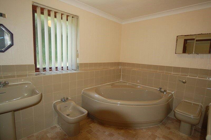 In more detail the accommodation comprises of:-ENTRANCE HALL:Stairs to first floor.LOUNGE: 22’7″ x 17’11” (6.88m x 5.46m)Brick fireplace with shelf/display unit. Patio doors to conservatory.DINING ROOM: 14’4″ x 11’7″ (4.37m x 3.53m)Window to garden. Patio doors to conservatory.KITCHEN/BREAKFAST ROOM: 15’7″ x 14’1″ (4.75m x 4.29m)Range of wall and base units with electric oven, ceramic hob and double stainless steel sink. Windows. Door to:-UTILITY: 8’11” x 8’9″ (2.72m x 2.67m)Single stainless steel sink. Space for washing machine and tumble dryer. Window. Door to garden.BEDROOM ONE: 19’10” x 14’7″ (6.05m x 4.44m)Fitted closets. Windows.EN-SUITE: 10’9″ x 7’4″ (3.28m x 2.24m)Suite comprising of corner bath, separate shower, low level wc, pedestal hand basin and bidet. Window.STUDY/BEDROOM FOUR: 8′ x 8′ (2.44m x 2.44m)CLOAKROOM: 8’4″x 4’6″ (2.54mx 1.37m)Suite comprising of low level wc and hand basin. Heater. Window.CONSERVATORY: 15′ x 9′ (4.57m x 2.74m)Doors and windows to garden.