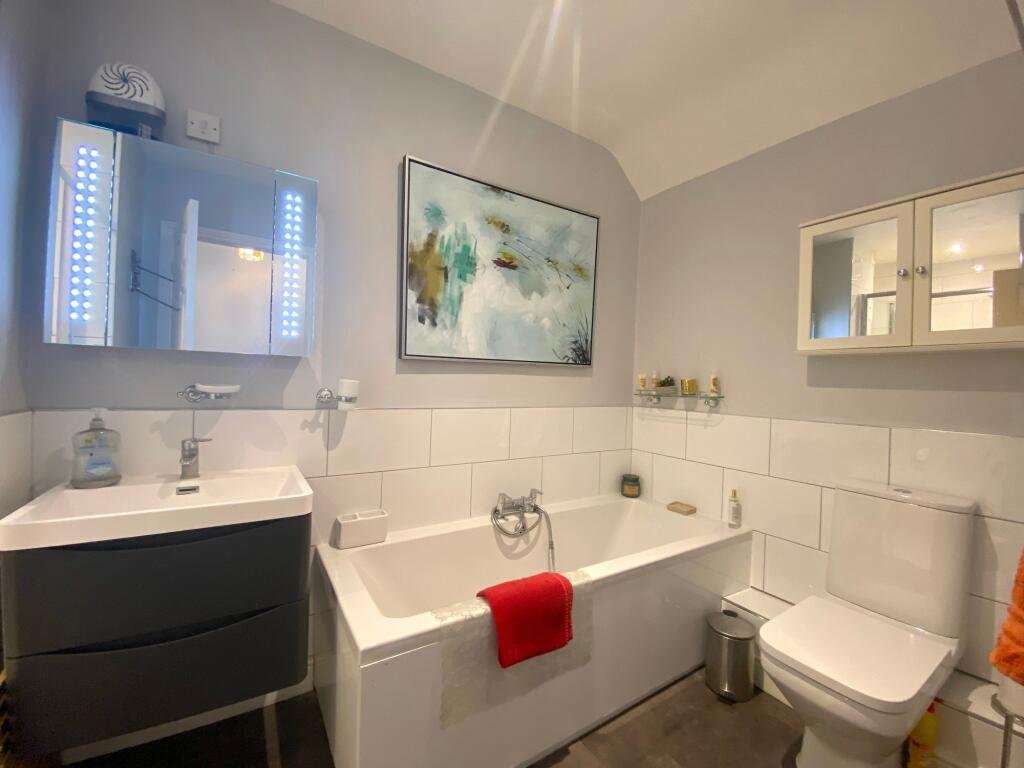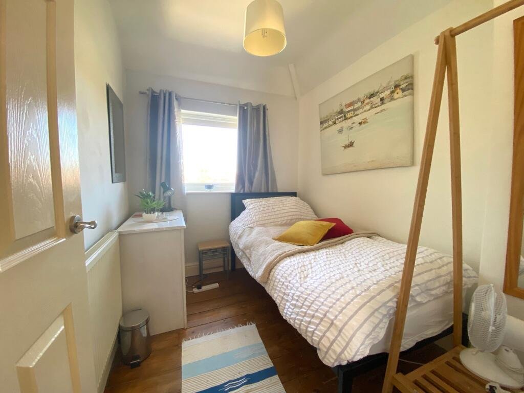 double bedroom to the front also has a built-in storage cupboard with the third bedroom being a single room with window to rear aspect. The modern bathroom includes a shower cubicle, bath with mixer taps, low level WC and wash basin in vanity unit.