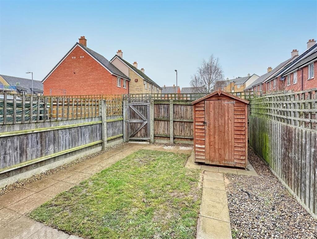 The property comprises an entrance hall and a spacious living room which leads through to a kitchen/diner with fully integrated units including a fridge/freezer, dishwasher, and a freestanding washer/dryer. Patio doors from the kitchen lead onto a part lawned/ part paved enclosed rear garden with a shed. There is also a downstairs WC and storage on the ground floor.