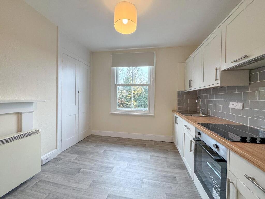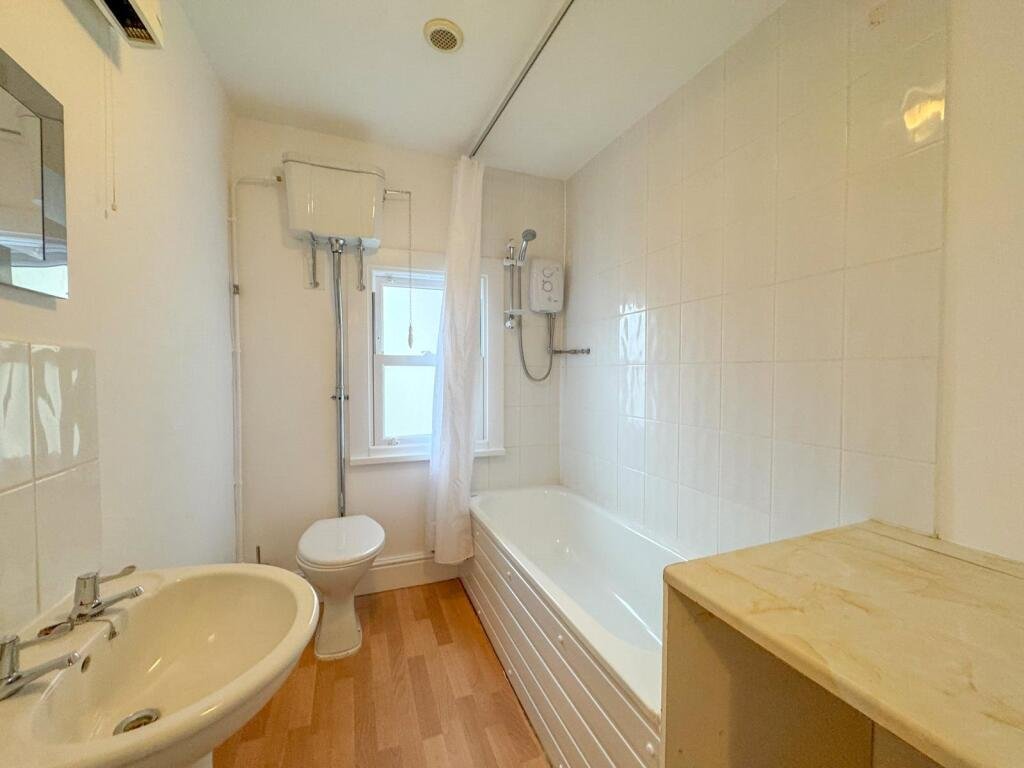 cupboard and window to side aspect. Bedroom – Large double bedroom with built-in wardrobes and two windows to front aspect. Could also be used as the living room. Bathroom – Suite comprising WC, pedestal wash hand basin, bath with electric shower over, space and plumbing for washing machine and window to rear aspect. Outside – On street parking is available near by.