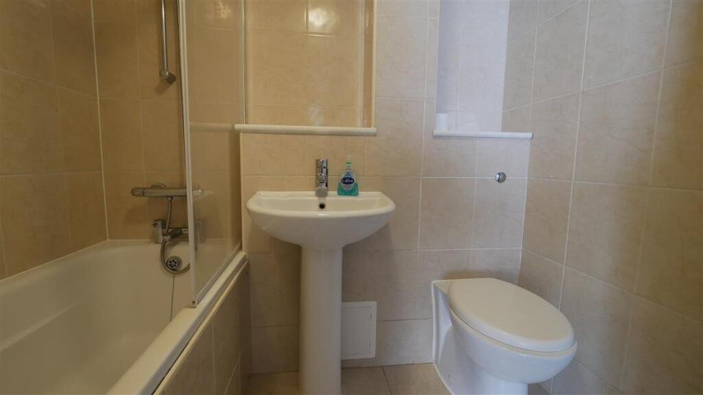 and bath with shower over. Heated towel rail.