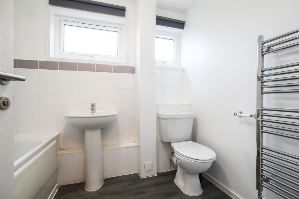 Bathroom – with shower over bath and glass screen, WC, wash basin, wall mounted mirror, heated towel rail and two windows to front aspect.
