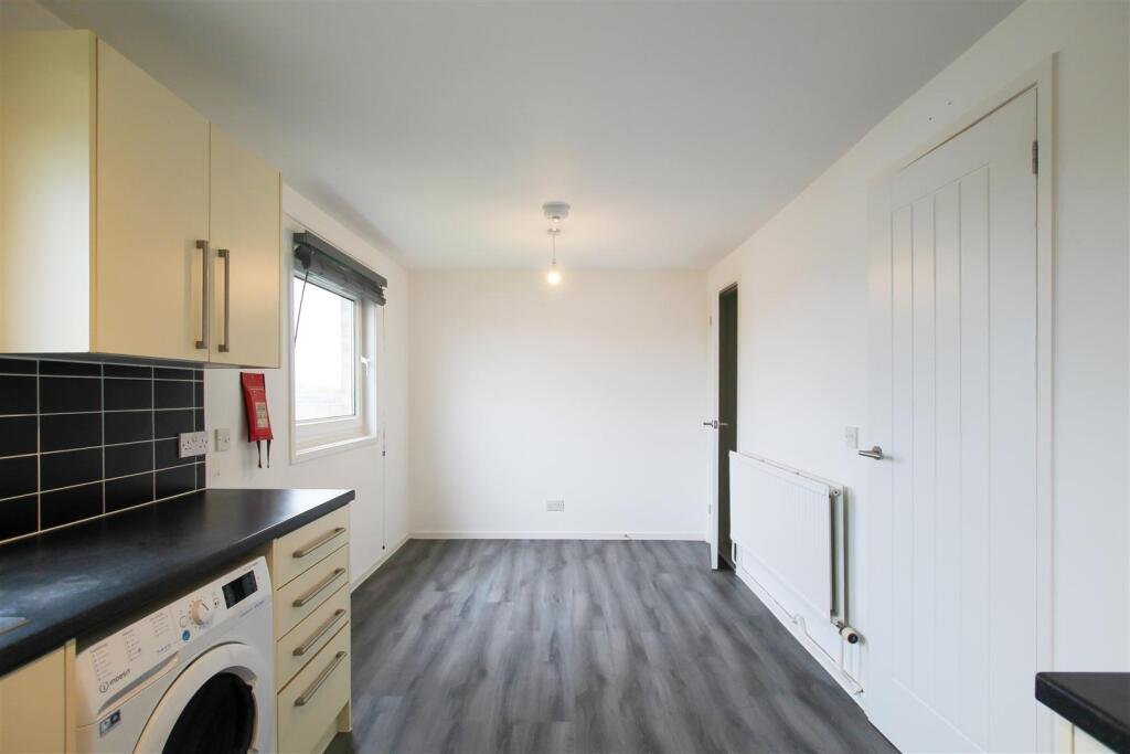 Kitchen – Kitchen area fitted with base and wall units, worktops, sink, washing machine, oven with electric hob and extractor above. Space for a fridge freezer space for a dining table. Window to front aspect and further window to front aspect. Walk in pantry cupboard with fitted shelves.