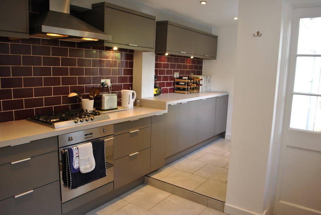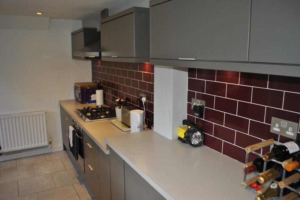 KITCHEN 14′ 08″ x 10′ 05″ (4.47m x 3.18m) With gas hob and electric oven and fridge.Â