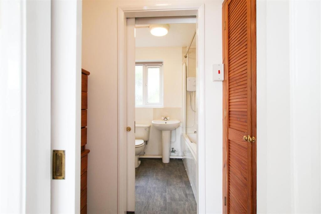 Bathroom – shower over bath, w.c., wash basin, mirrored cabinet and window to rear aspect.