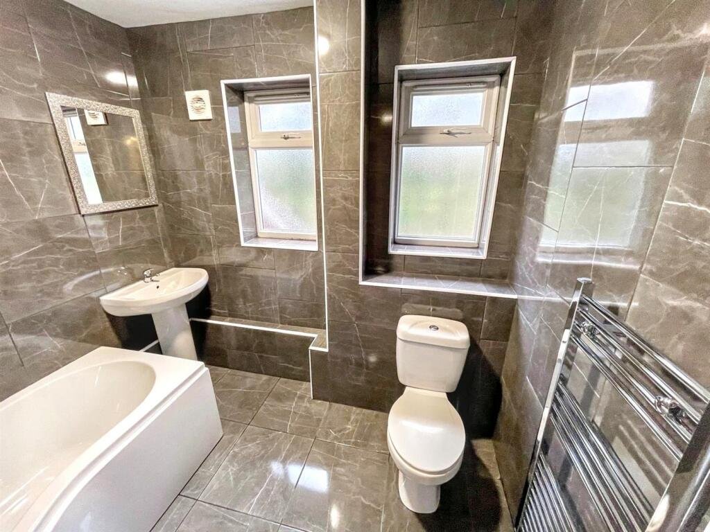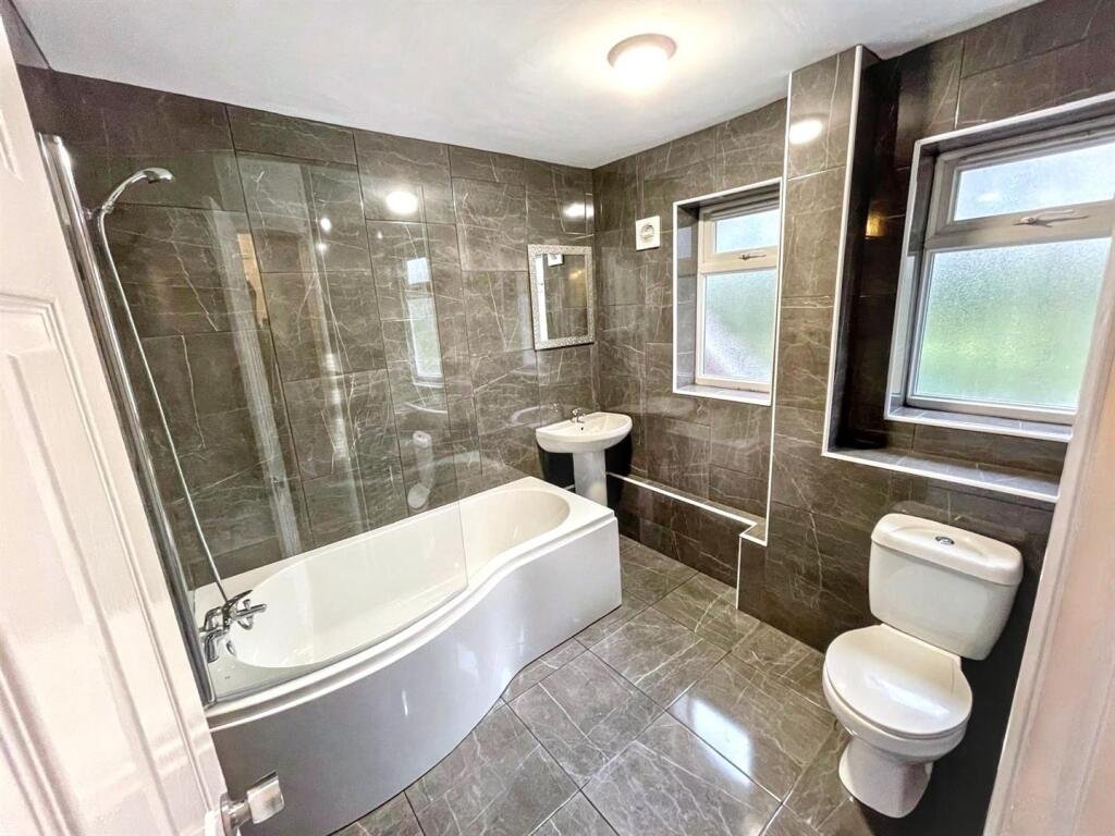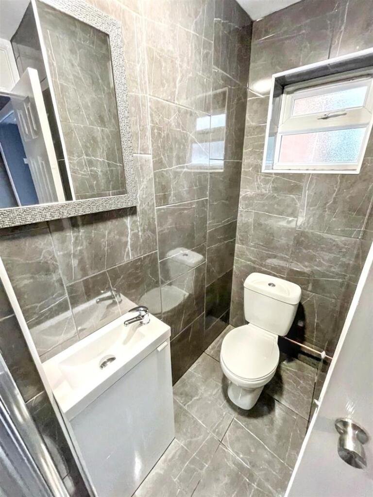 On the ground floor, the property comprises a bright and welcoming lounge, ideal for socialising and relaxing, and a modern fitted kitchen with ample storage, fridge freezers, washing machine, and cooking facilities. The layout provides a homely yet functional space for shared living.