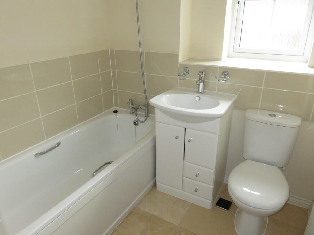 BATHROOM WC, basin and bath with shower attachment overÂ