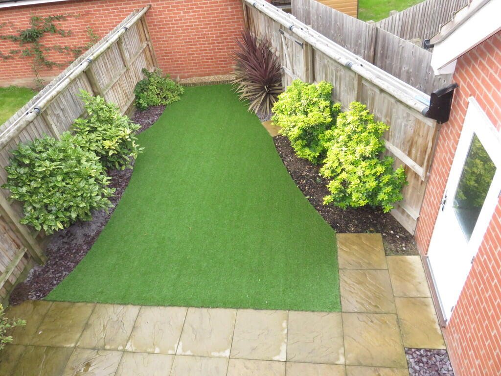 OUTSIDE Enclosed rear garden has astro-turf for low maintenance and a personnel door into garage.