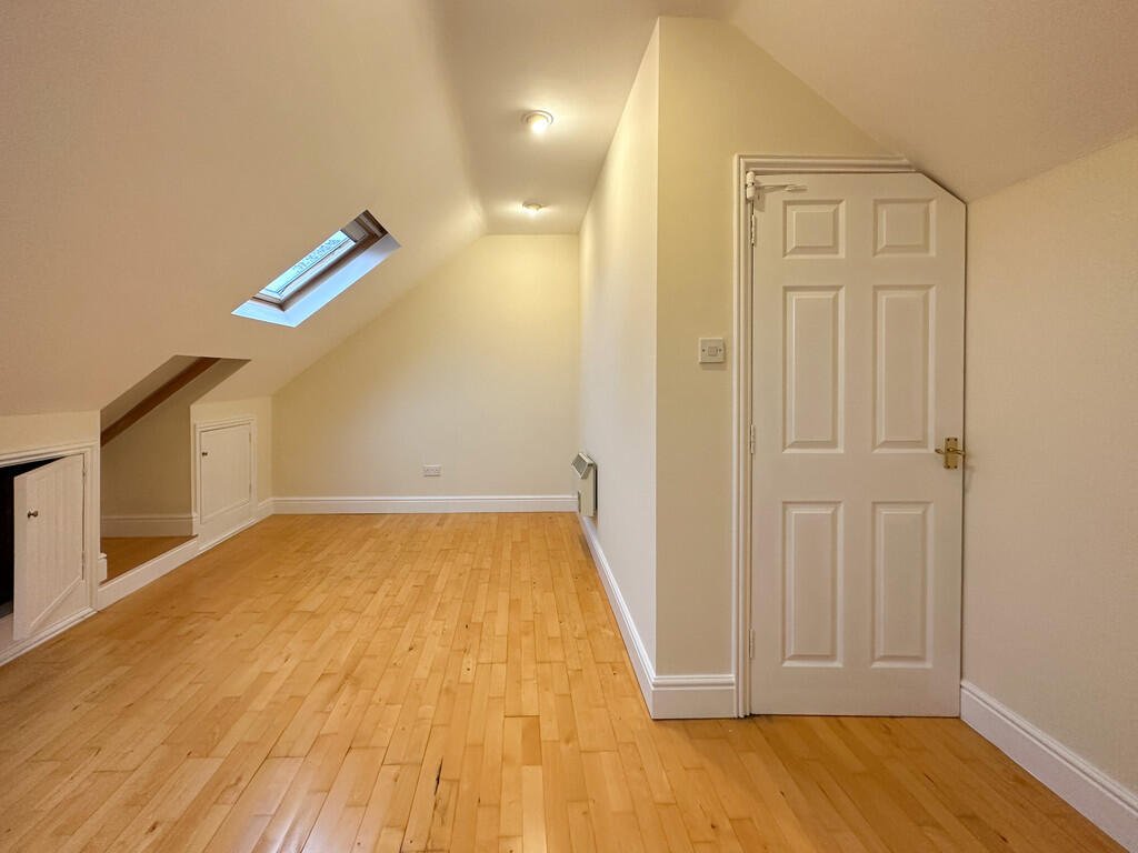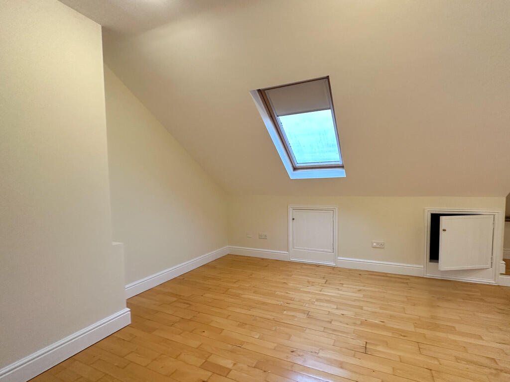 BEDROOM 3 Large double room on the second floor with hard flooring, Velux windows, electric heaters, and ample storage space to cupboards in eaves. Â