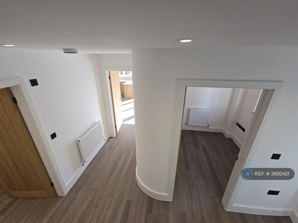 First Floor Landing With Velux windows to side, storage cupboard, wall mounted radiator, power points, fitted carpet, inset ceiling downlighting, doors to rooms.