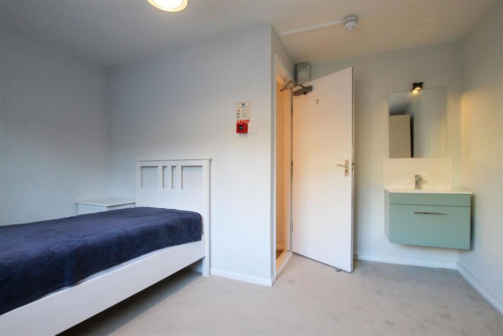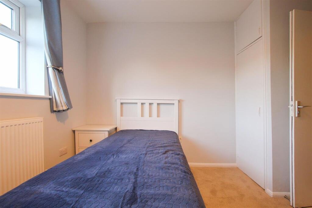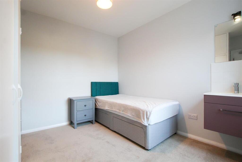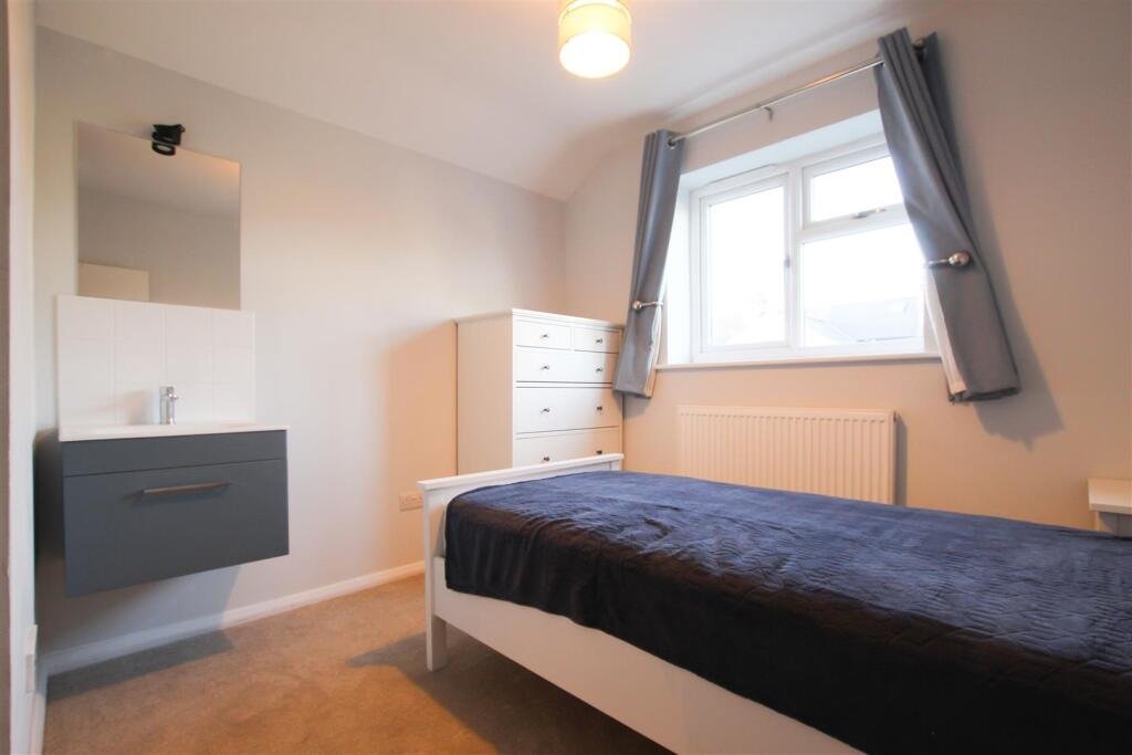 Bedroom 2 – window to rear aspect, wash basin with vanity unit below and mirror above and furniture comprising single bed, bedside unit and wardrobe.