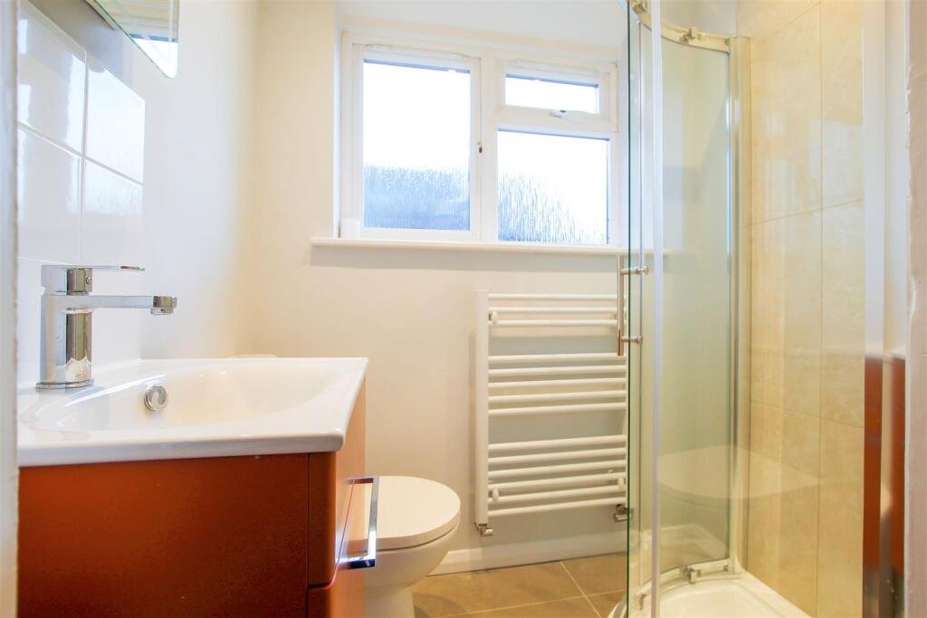 Shower Room – shower enclosure, wc, wash basin with vanity unit below and illuminated mirror above, heated towel rail and window to side aspect.