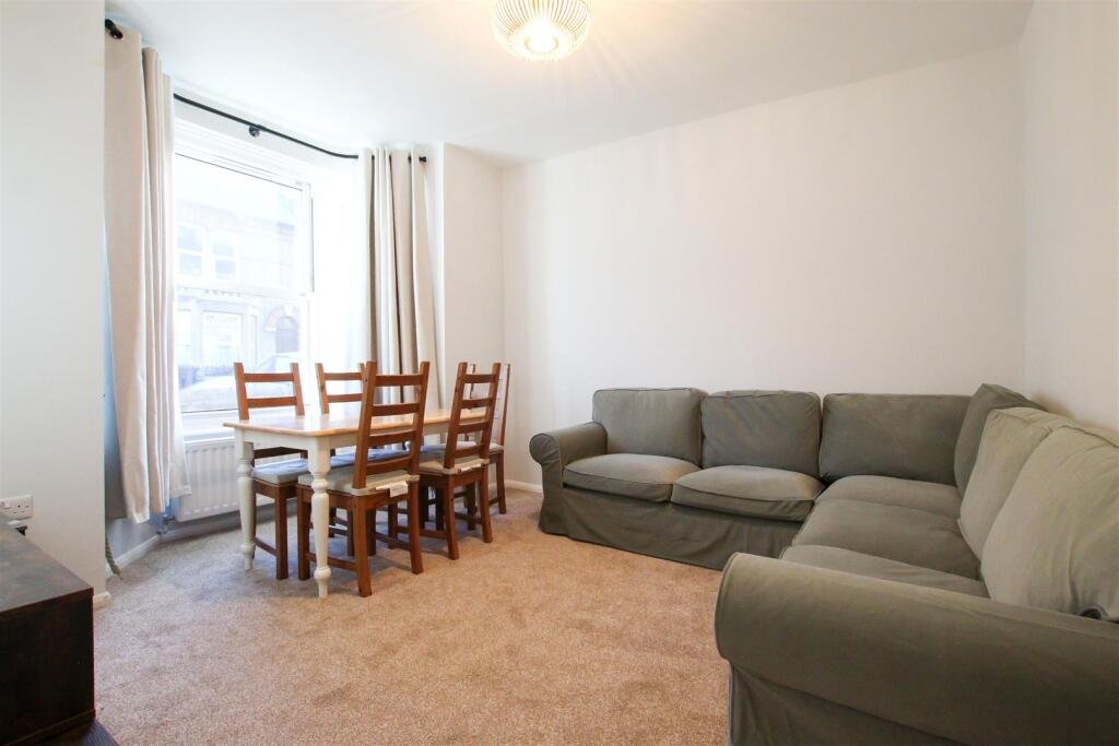 Living Room – bay window to front aspect and furniture comprising corner sofa, dining table with