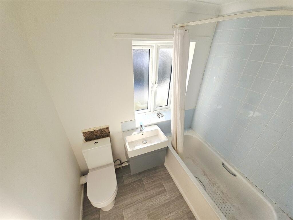 Bathroom3 Piece White suite comprising of a low level flush toilet, hand wash floating basin with mixer taps, panel enclosed bath with mixer taps and shower attachment, double glazed frosted window to rear aspect, lino flooring, tiled splash backs, coving, radiator.