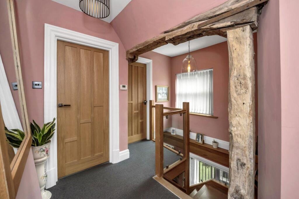 by a large inglenook fireplace, with a log burning stove each side. This gives a large living room to one side, and an exceptional kitchen diner with breakfast bar to the other. To the rear is a convenient utility room, with downstairs WC and a study / ground floor bedroom. Bi-fold patio doors overlook the beautifully maintained courtyard garden, perfect for summer entertaining. The first floor, accessed via an oak and glass staircase contains two cozy and comfortable double bedrooms both with ensuites, and a family bathroom. The accommodation is completed on the top floor with a bedroom spanning the entirety of the attic which was converted during the refurbishment, this is spread over two rooms and has its own lobby at the bottom of the stairs. Would be perfect as guest accommodation or for a child`s bedroom. With original exposed beams and character throughout, this is a stunning property that is not to be missed. Early viewing is recommended to truly appricate the quality and space on offer.