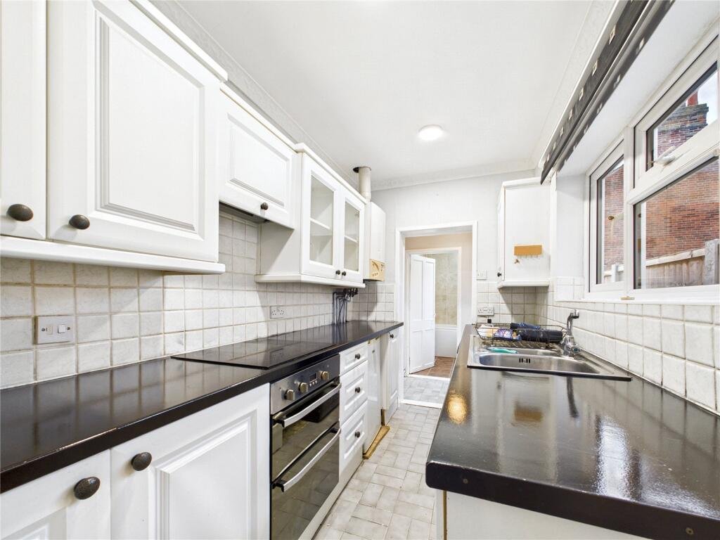The property offers well-proportioned accommodation with two reception rooms split via a feature only fire place in the middle, kitchen with a range of base and eye level units, cooker, sink with drainer, washing machine and undercounter fridge.