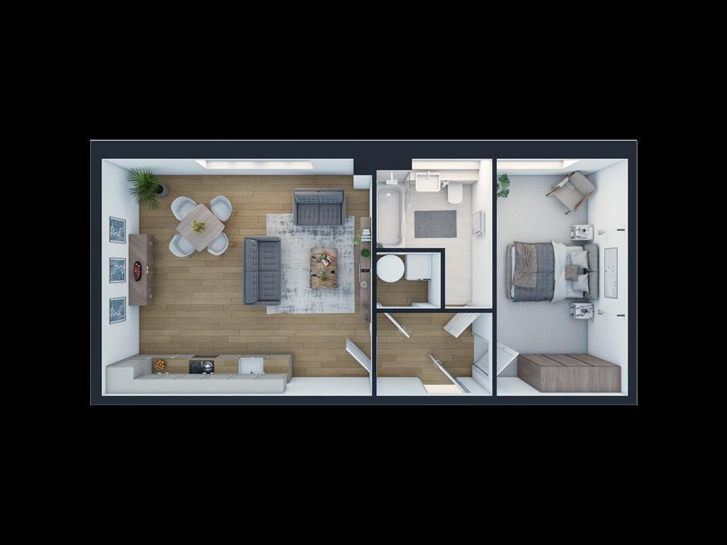finish to the walls and floor. To finish the apartment you have a large and inviting open plan kitchen living dining space offering room for all the homely comforts and large windows allowing an abundance of light to fill the space. The kitchen offers a range of fitted appliances such as fridge freezer, dishwasher, oven and hob.