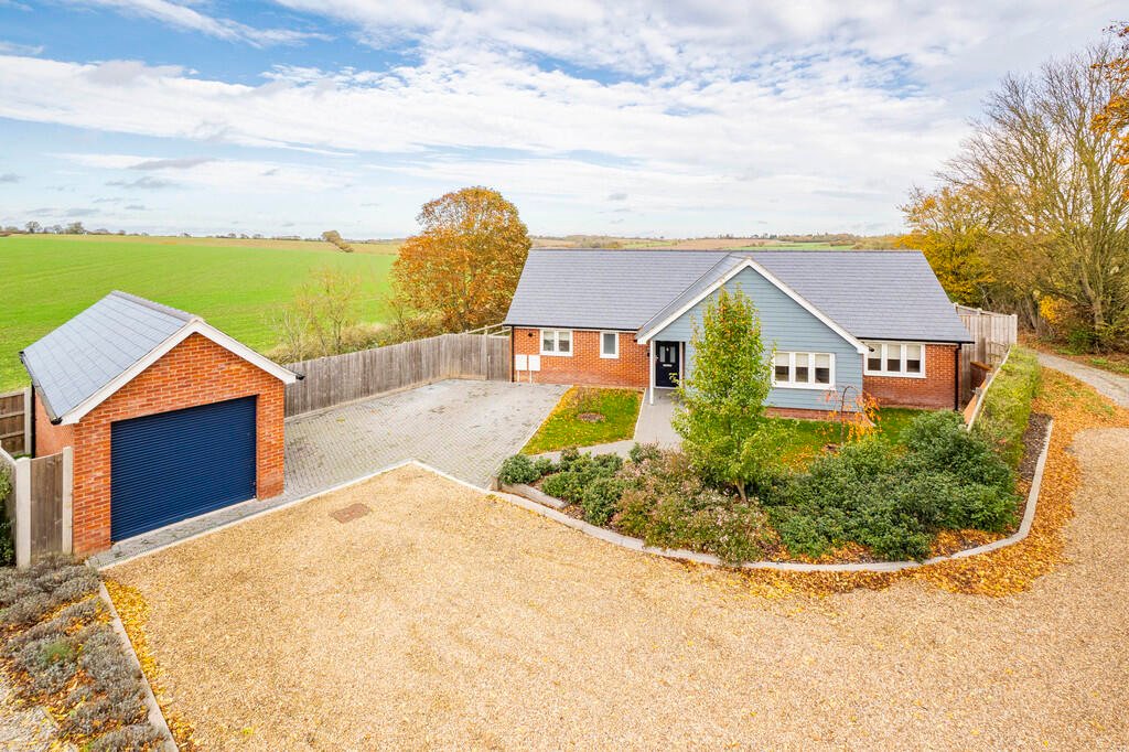 DESCRIPTION: This spacious three double bedroom detached bungalow is situated at the end of a private driveway with wrap around garden, surrounded by far reaching countryside views. The property was built in 2022 and is finished to a particularly high standard with en-suite to master bedroom, large kitchen/dining room, utility, garage and ample off-road parking. Â