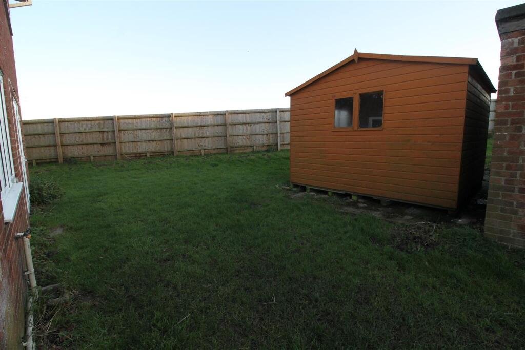 Outside – The property is approached by a private driveway leading to a parking area for two to three vehicles. There is a detached garage and a shed for storage. The gardens surround three sides of the property, with a good sized area to the rear, all laid to lawn with mature shrubs and trees.