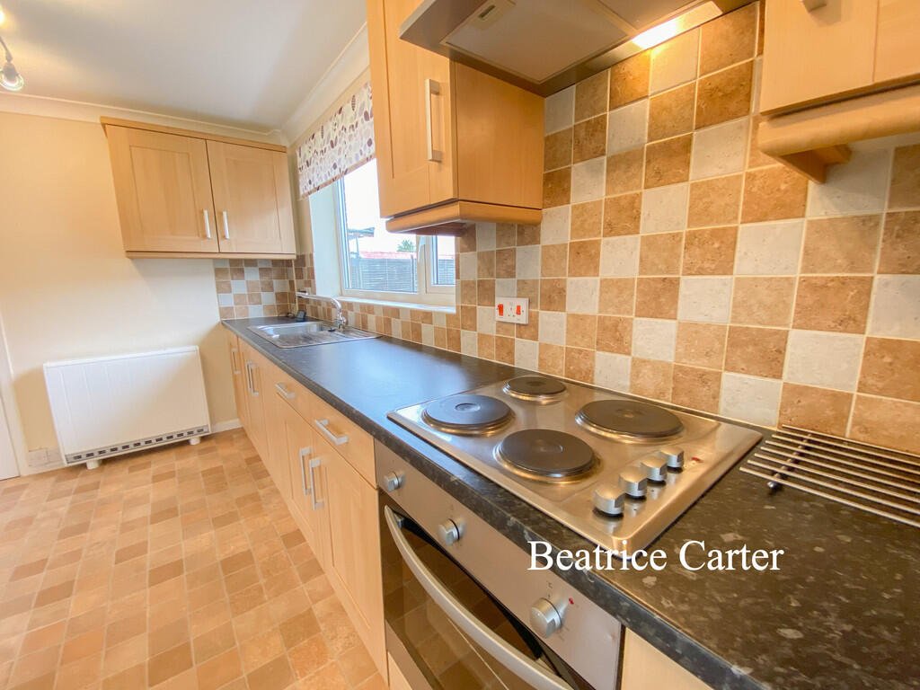 KITCHEN 12′ 4″ x 7′ 9″ (3.76m x 2.36m) Vinyl Flooring,Blind to Window,Wall and Base Units,Single Oven,Electric Hob,Cooker Hood.