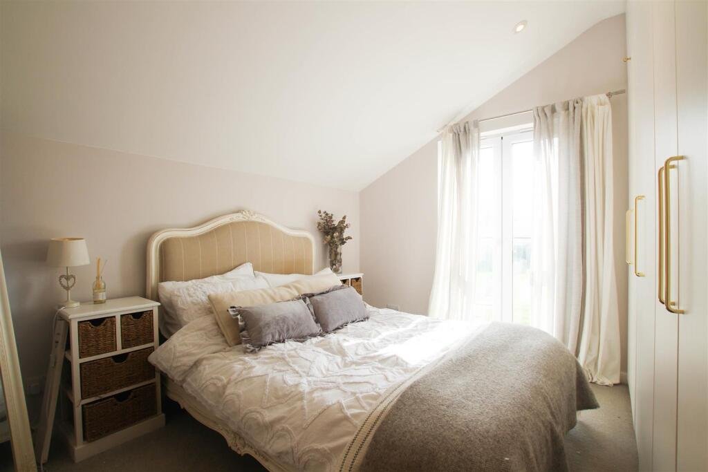 Master Bedroom – 3 x 3.5 (9’10” x 11’5″) – The master is located to the rear of the property and benefits from built in wardrobes and French doors which open to a Juliette balcony providing views over the surrounding countryside.